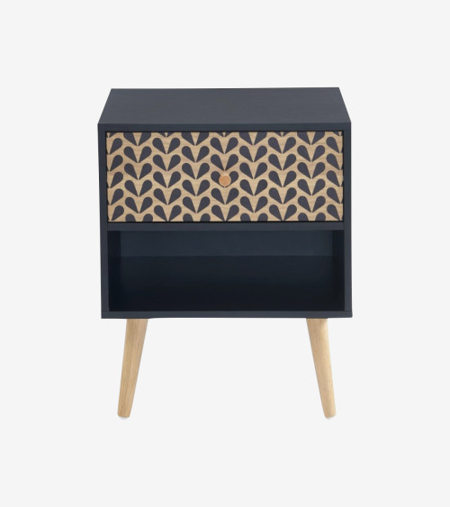 Table de chevet noir et effet bois 1 tiroir L40 x P33 x H49 cm