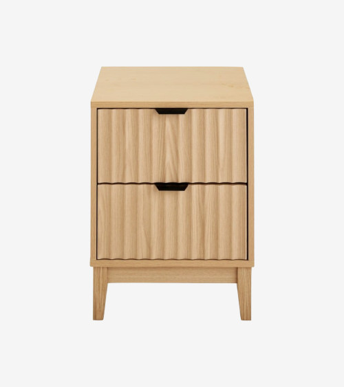 Table de chevet avec 2 tiroirs aux façades effet vague L 40 cm x L 40 cm x H 52 cm