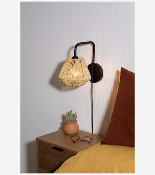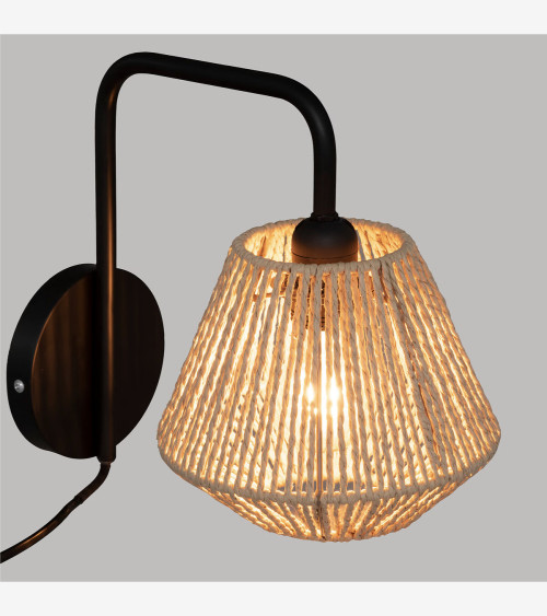 Elle est articulée par un bras en métal teinté, relié à une base cylindrique. Il retient un abat-jour tressé de cordes en papier qui vous procurera une lumière originale et légèrement tamisée en fonction de l'ampoule choisie.