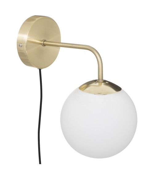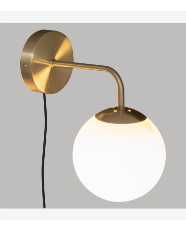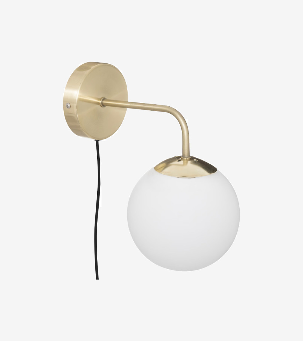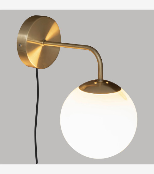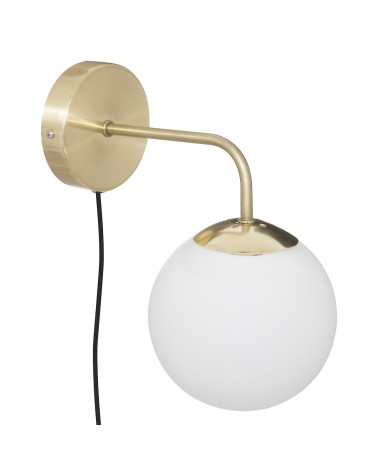 L'applique murale est composée d'une base en métal au fini laiton et aux lignes douces. Le bras principal retient un abat-jour boule en verre sablé qui produira une lumière agréable et sophistiquée dans votre univers. Choisissez une ampoule d'un blanc plus ou moins chaud selon vos envies !