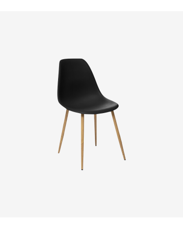 Chaise scandinave polypropylène noir pied métal imitation hêtre