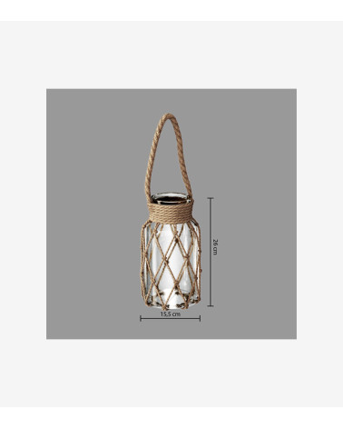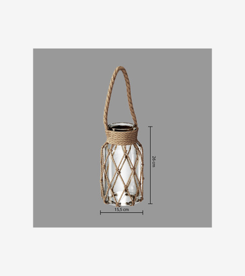 Laissez-vous tenter par ce photophore en verre et en corde. Son design particulier fera de jolis effets de lumière dans votre intérieur.
