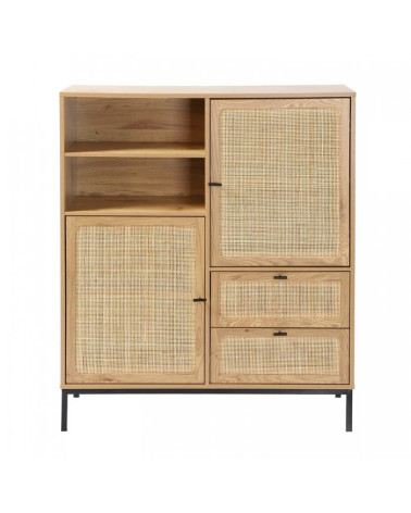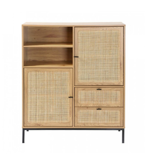Découvrez ce magnifique buffet haut avec façades en rotin naturel. Son design exotique s'adaptera à toutes les décorations d'intérieur tout en apportant du cachet à votre pièce. Ce buffet dispose de multiples rangements : 2 portes, 2 tiroirs et 2 niches qui vous permettront de ranger toutes les affaires de votre choix.