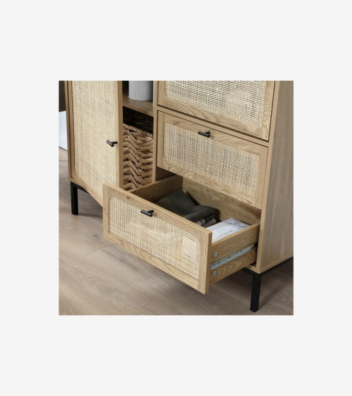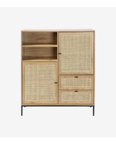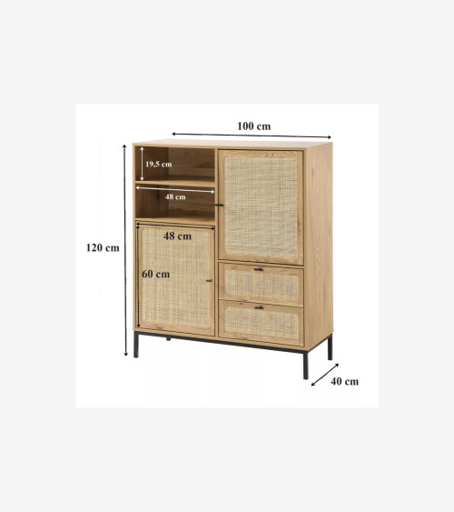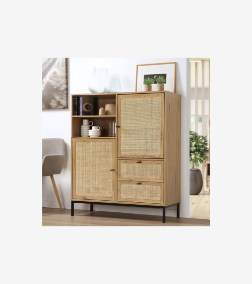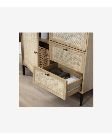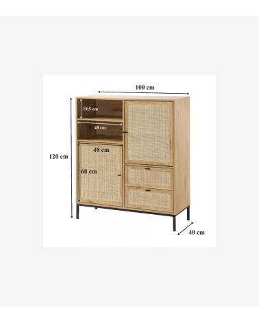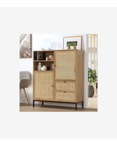 Buffet Haut avec Façades en Rotin Naturel - L 100 cm x l 40 cm x H 120 cm