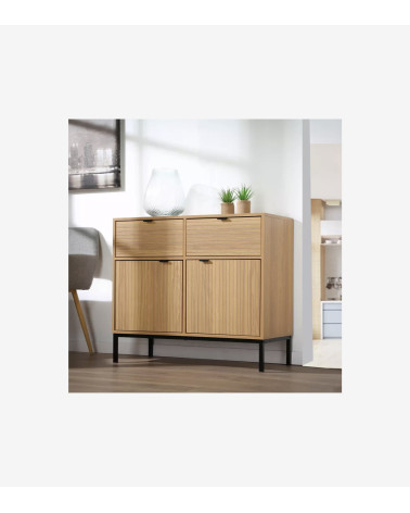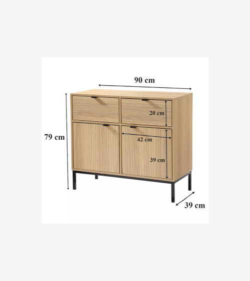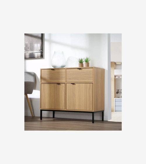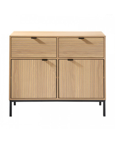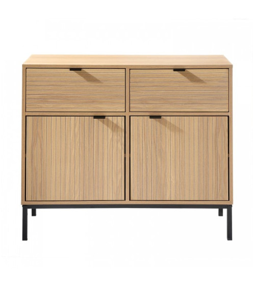 Petit buffet 2 Portes 2 Tiroirs Façades Rainurées L 90 x l 39 x H 79 cm