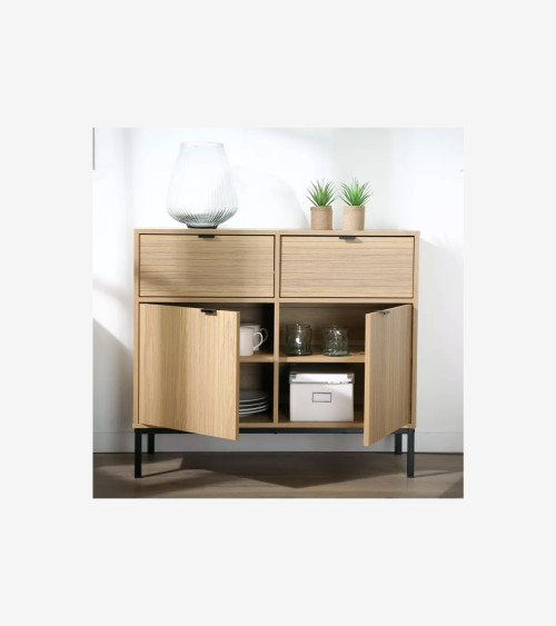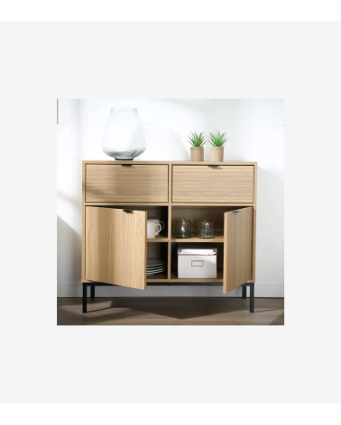 Découvrez notre buffet avec 2 portes 2 tiroirs, parfait pour ranger toutes vos affaires dans un meuble compact au design actuel. Pour apporter du rangement dans votre salle à manger ou meubler votre pièce de vie.