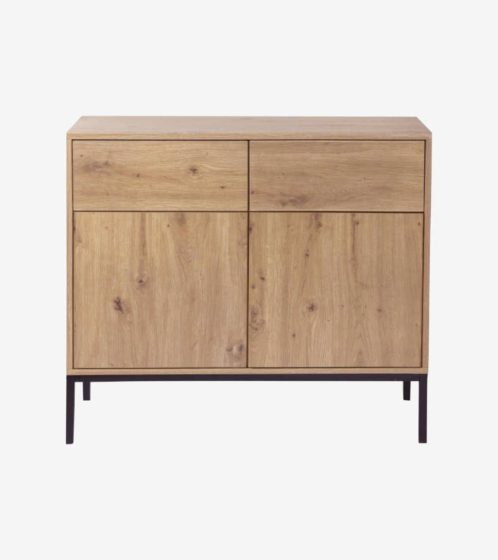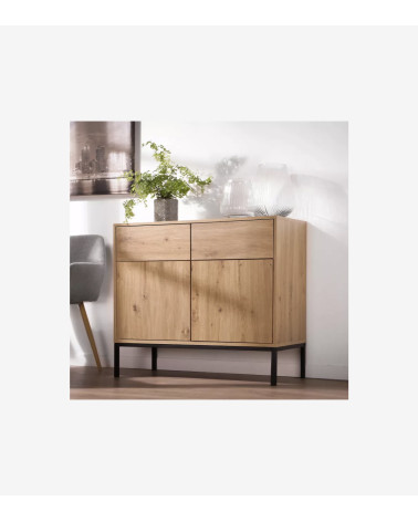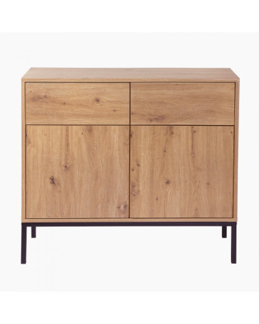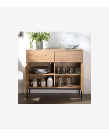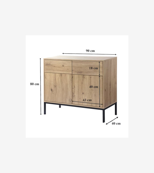 Buffet 2 Portes 2 Tiroirs Décor Chêne L 90 cm x l 40 cm x H 80 cm