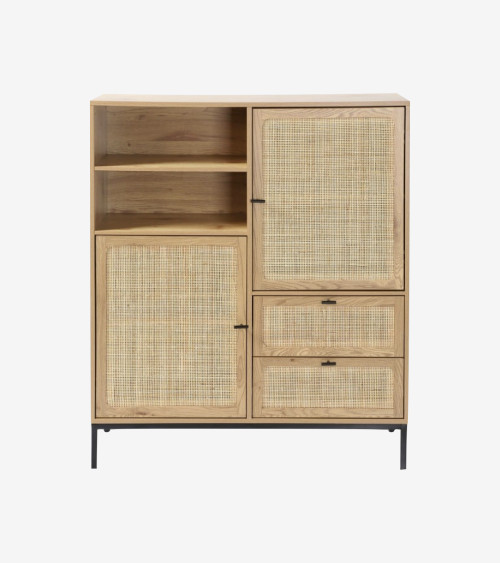 Fabriqué en panneaux de particules, façades en MDF et pieds en bois d'hévéa massif.