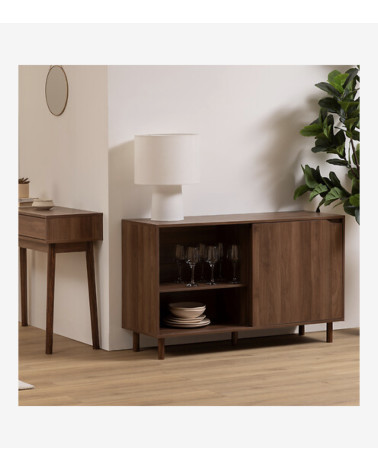 Buffet 120x40x72 cm avec tablette et rangements fermés, la vaisselle et le linge de table trouvent leur place et le séjour reste ordonné tout en gardant les indispensables à portée.Étagères amovibles et réglables pour adapter la hauteur aux grands plats, bouteilles ou paniers, l’intérieur évolue simplement selon les besoins de la maison.