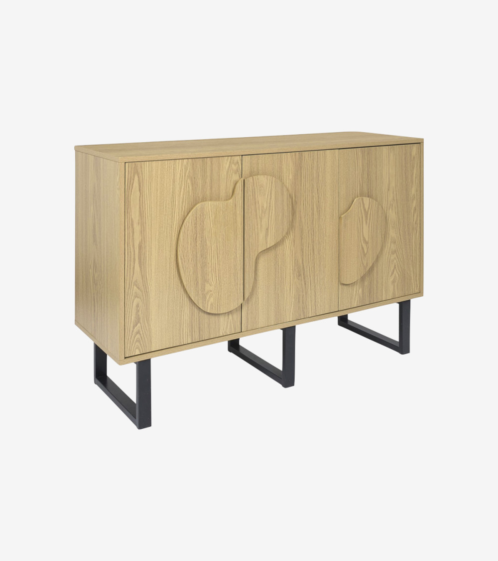 Ce buffet se distingue par son design élégant alliant des formes organiques et des pieds métalliques noirs. Ses portes sculptées avec des formes organiques ajoutent un charme unique. Avec ses grands espaces de rangement, il allie fonctionnalité et esthétique moderne pour sublimer votre intérieur.