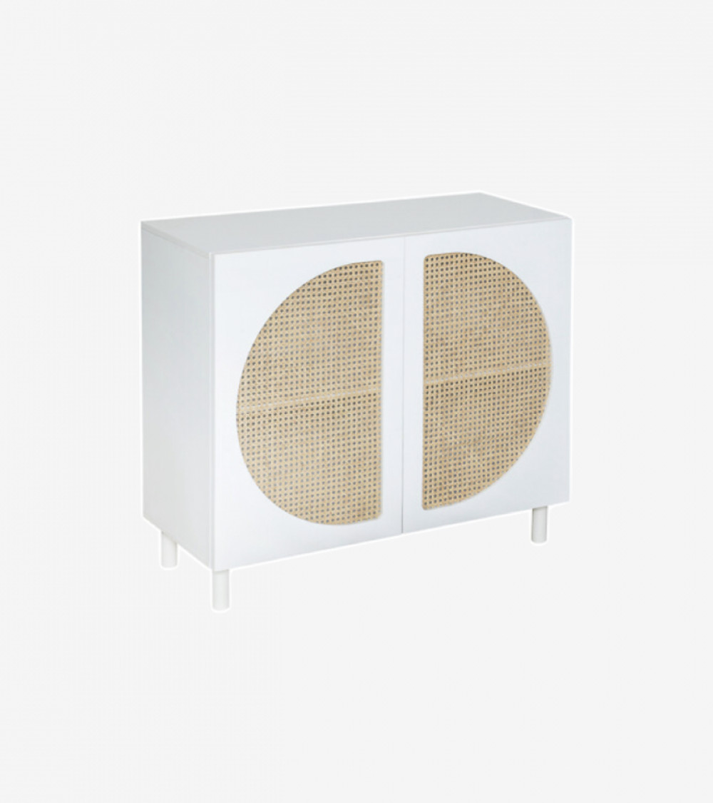 Buffet 2 portes - Blanc et Cannage L. 94 x P. 40 x H. 86 cm