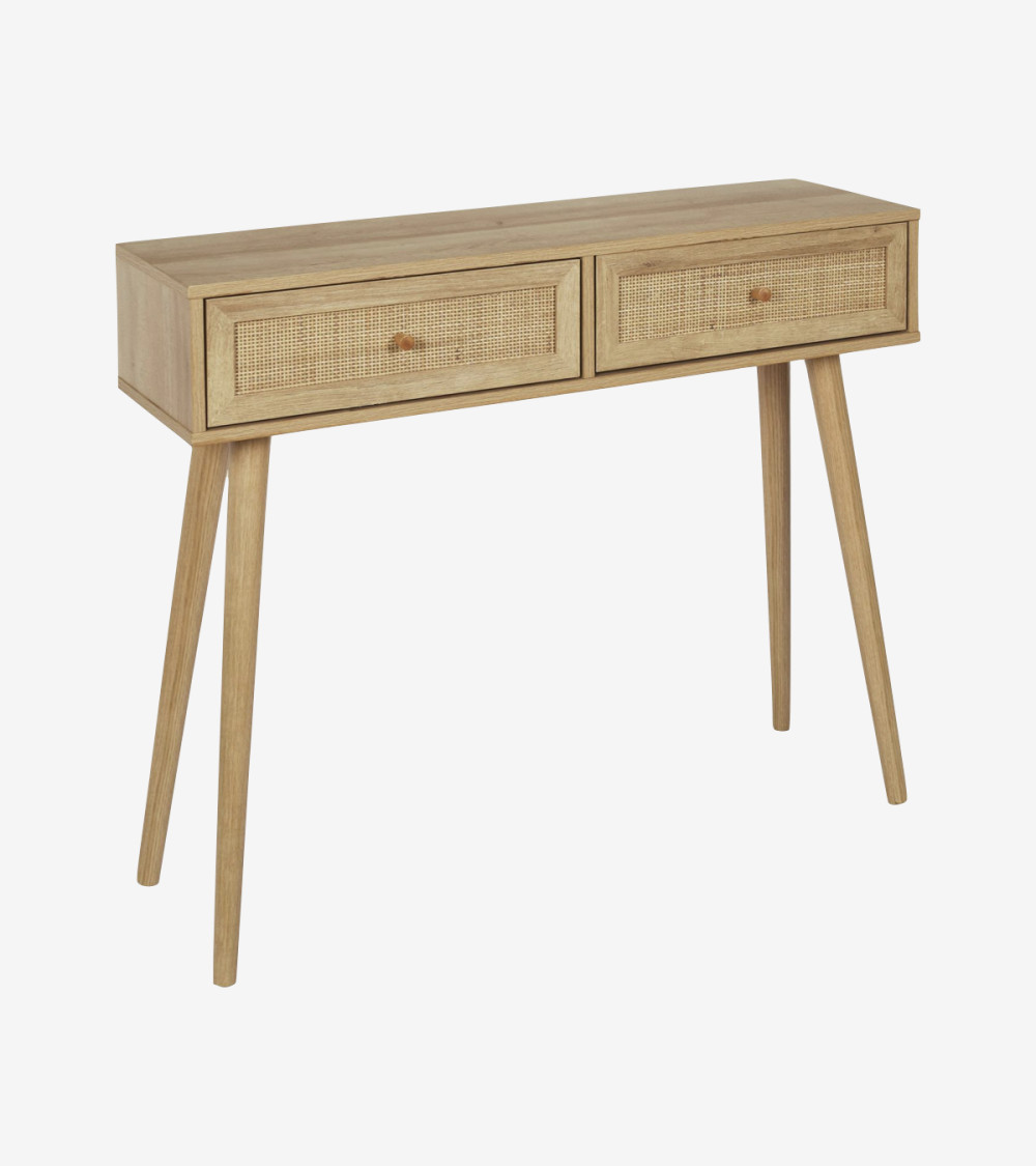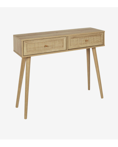Console 2 Tiroirs en bois et rotin L 100 x H 81 x P 29 cm