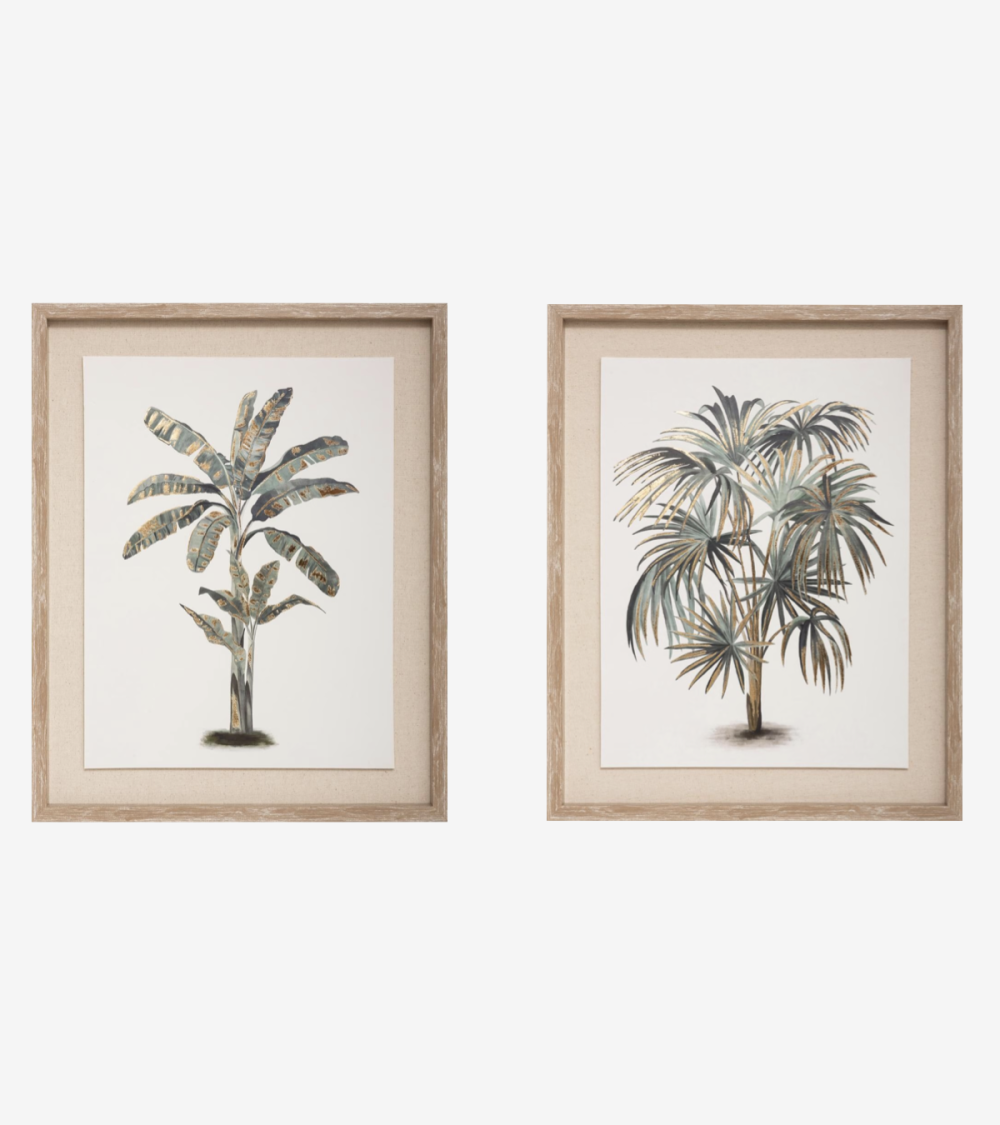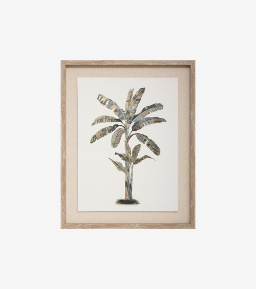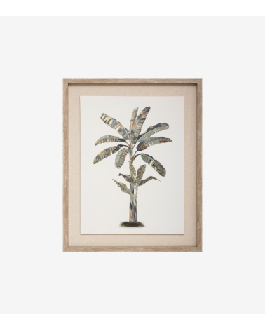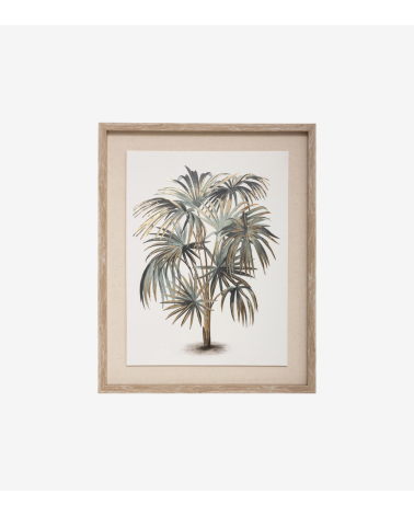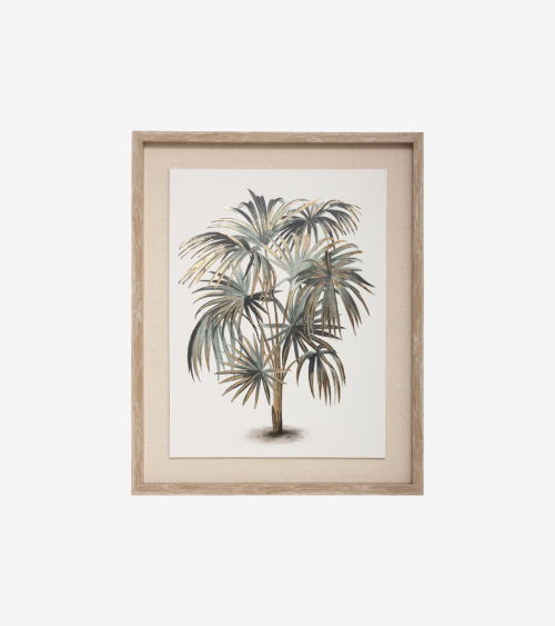 La toile est montée sur un cadre en fibre de bois à l'aspect patiné qui apportera instantanément un cachet authentique à votre déco. Elle représente des arbres tropicaux sublimés par de délicates touches de dorure. Cette toile vous offrira plusieurs possibilités d'agencement.