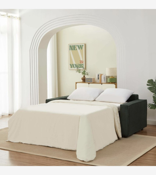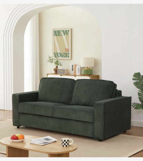 Canapé droit convertible express 3 places velours côtelé vert