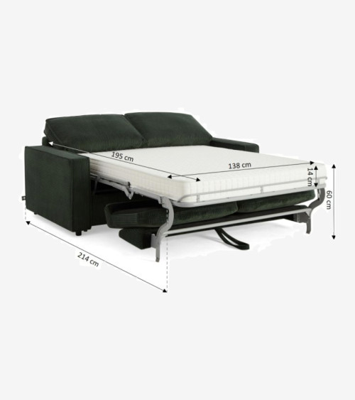Canapé droit convertible express 3 places velours côtelé vert - L192 x P103 x H92