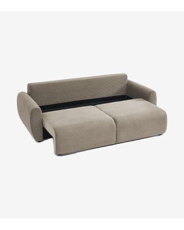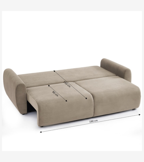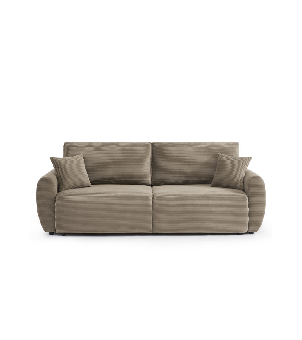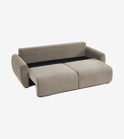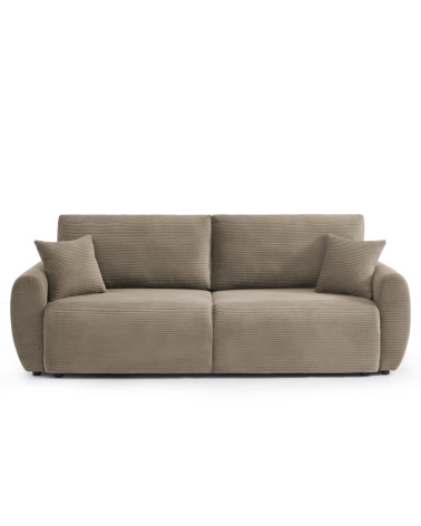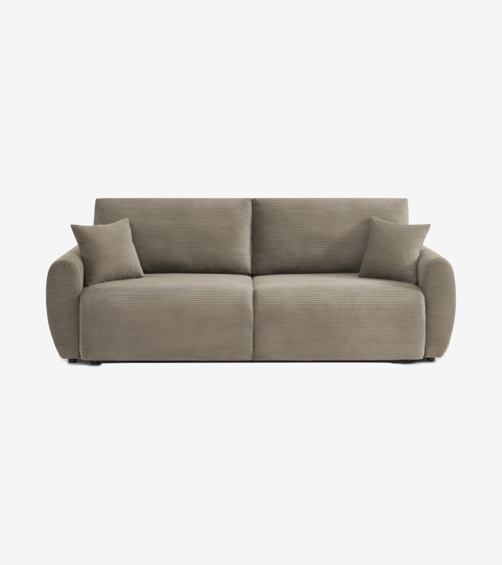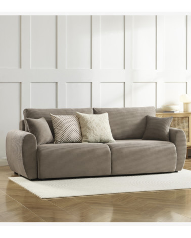 Canapé droit convertible 3 places velours côtelé taupe