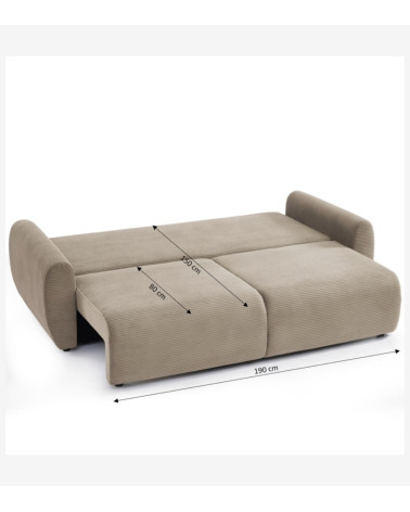 Besoin d'un couchage d'appoint ? Ce canapé se transforme en un lit confortable de 150 x 190 cm, parfait pour recevoir vos proches. Son mécanisme simple permet une conversion rapide et sans effort, offrant ainsi une solution idéale pour les petits espaces ou les invités de dernière minute. Sous l'assise, vous trouverez un spacieux coffre de rangement, le secret d'un intérieur bien rangé.