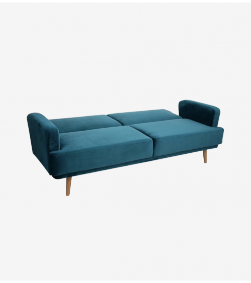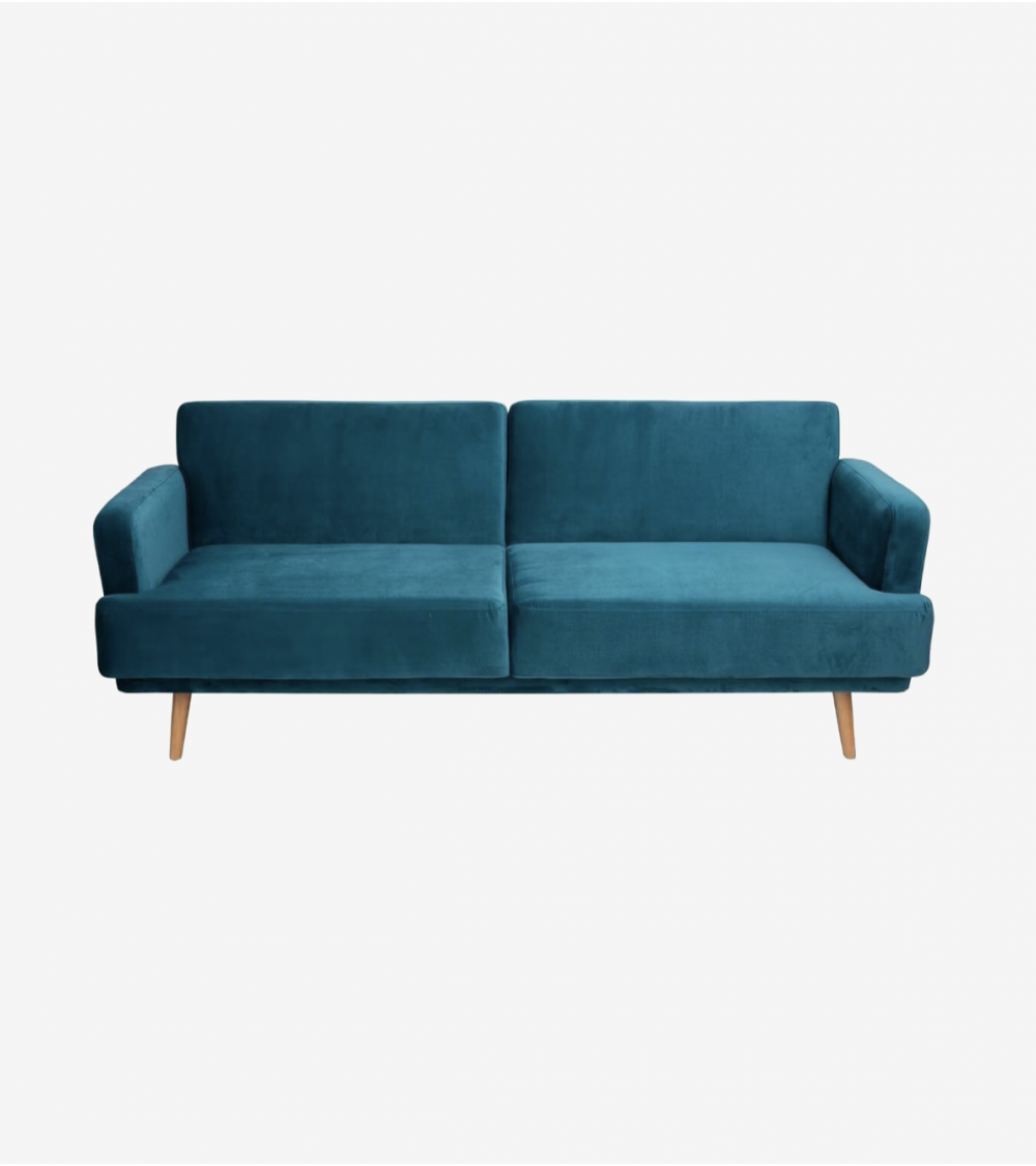 Canapé convertible 3 places - Velours/Tissu bleu L. 214 x P. 86 x H. 83 cm
