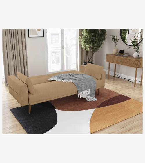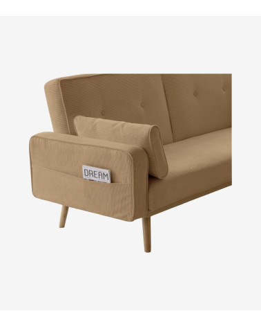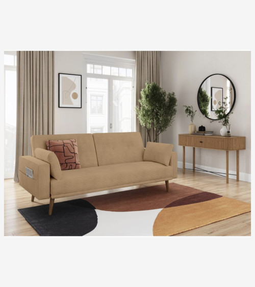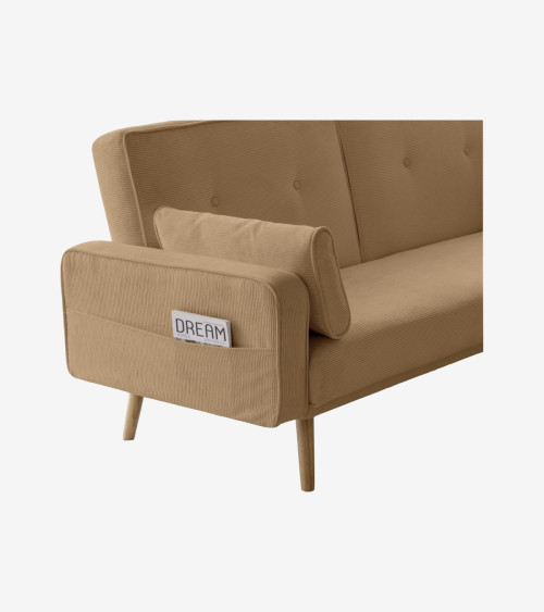 Ce canapé ne se contente pas d'être beau, il est également pratique. Grâce à sa fonction convertible, il peut facilement se transformer en un lit d'appoint pour les invités surprise. De plus, les deux coussins d'appoint inclus ajoutent une touche de confort supplémentaire.Le velours côtelé offre une texture douce et luxueuse, tandis que les lignes épurées lui confèrent un aspect contemporain.
