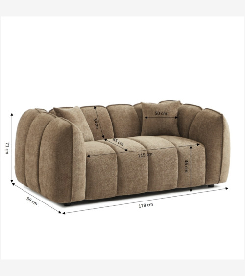 Canapé 2 places tissu chenille marron L 178 x P 99 x H 71 cm