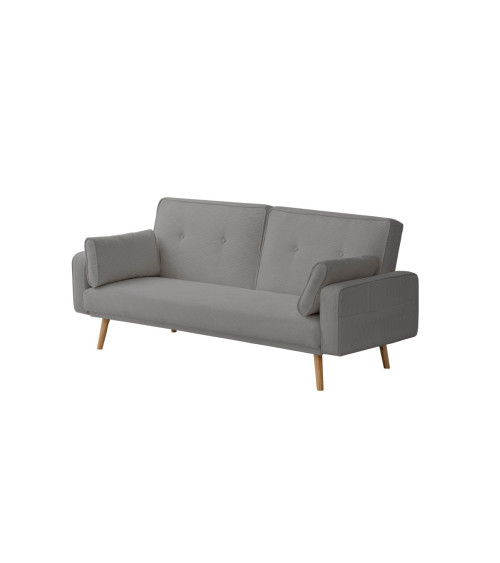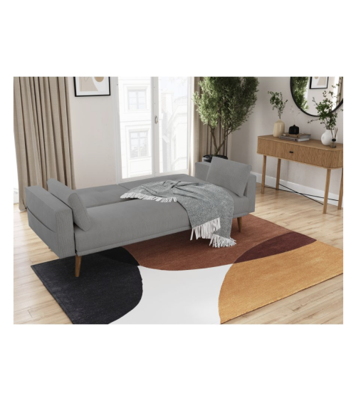 Convertible scandinave avec dosseret capitonné. Design contemporain avec un revêtement en tissu et des pieds en bois. Dossier dépliant, lit d'appoint fournis avec 2 coussins.