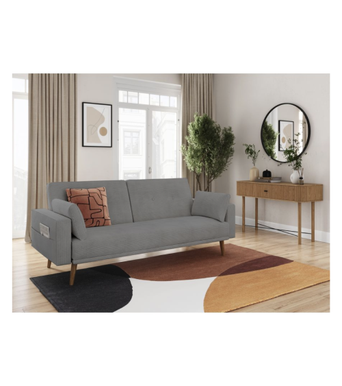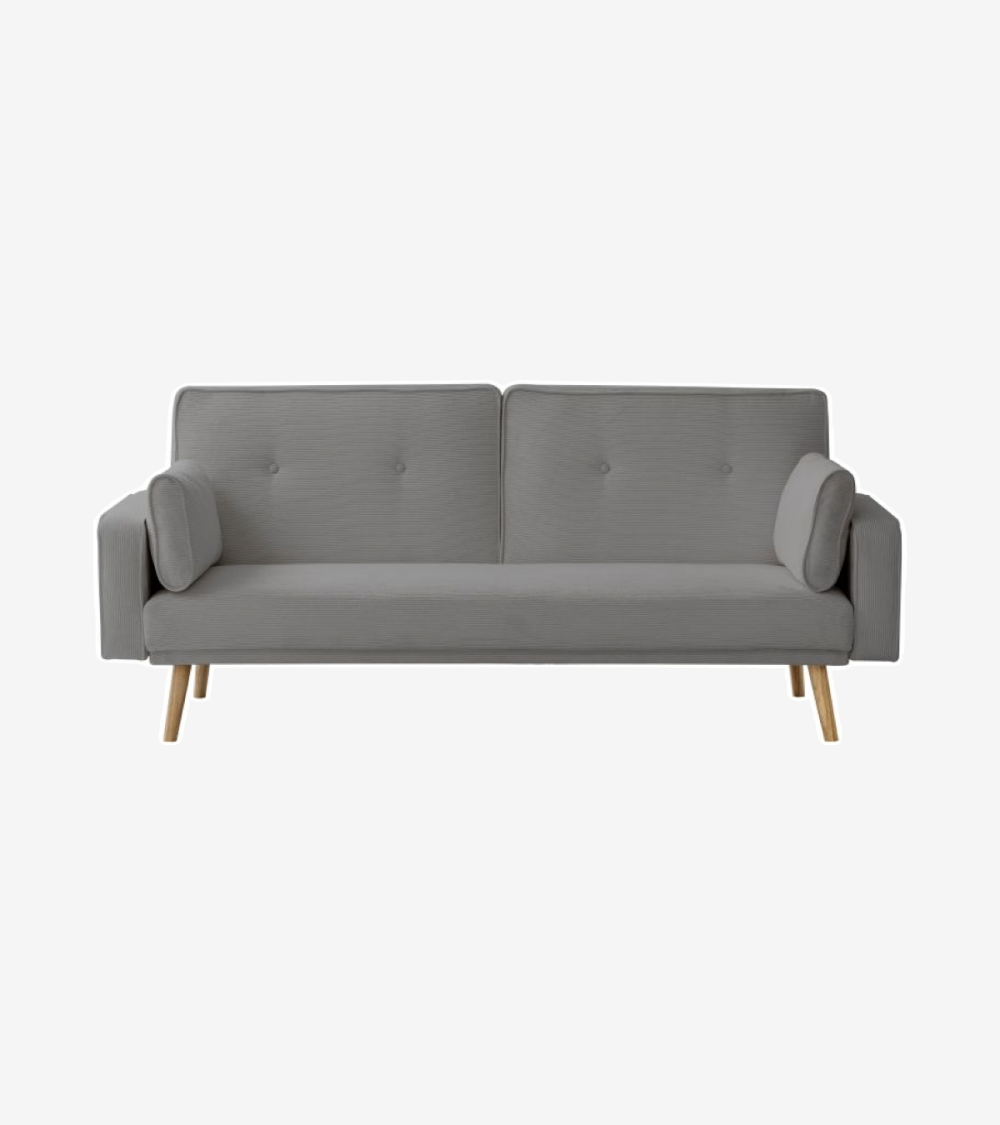Canapé droit 3 places convertible en velours côtelé - Gris L.205 x P.85 x H.87 cm