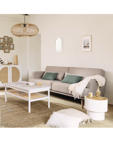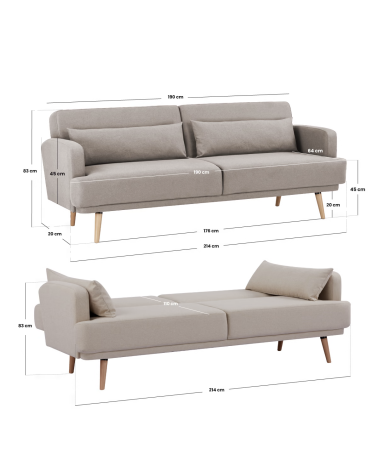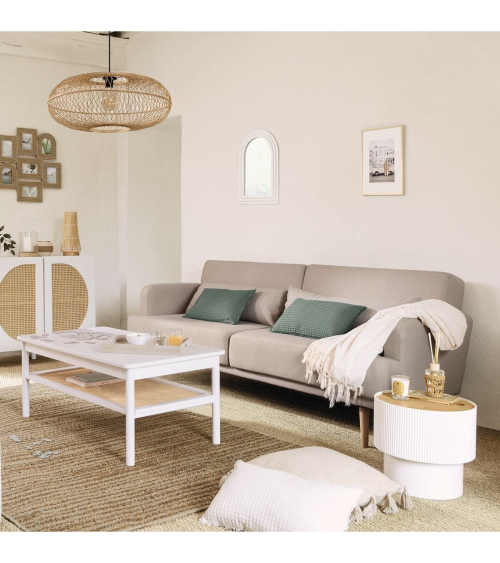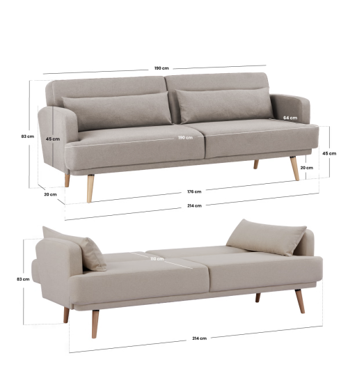 Avec sa capacité d'accueil de 3 personnes et sa fonction transformable en lit d'appoint, il offre confort et praticité. Ses pieds en bois façon scandinave ajoutent une touche moderne à votre salon.