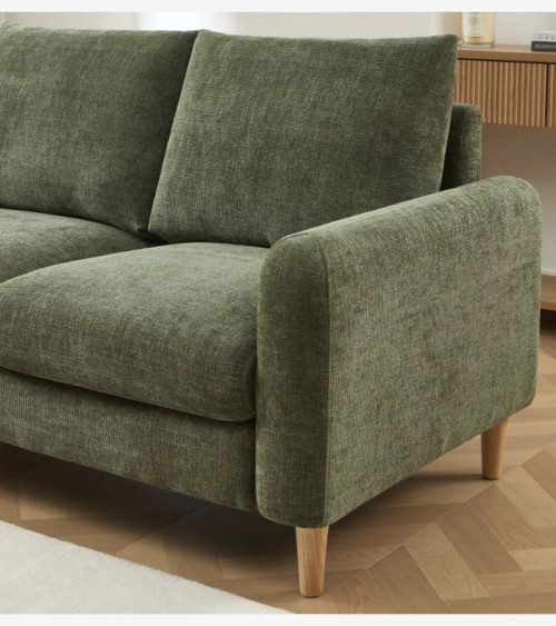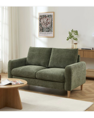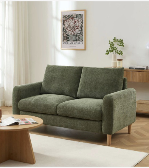 Canapé droit fixe 2 places tissu chenille vert - L148 x P81 x H89 cm
