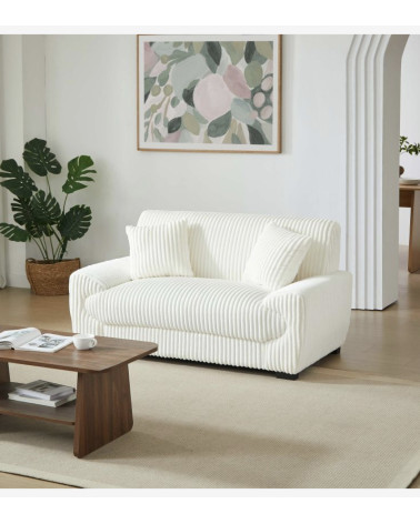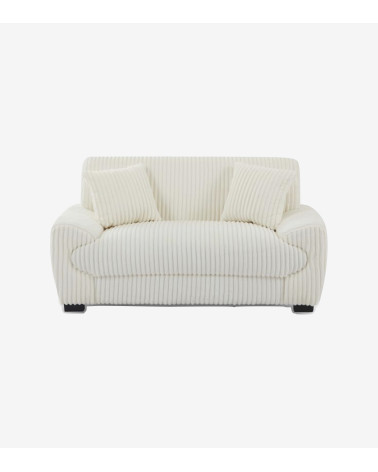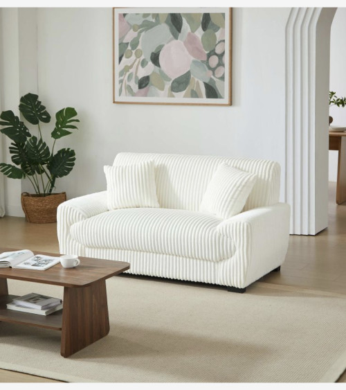 Canapé droit fixe 2 places velours côtelé beige - L148 x P79 x H79 cm
