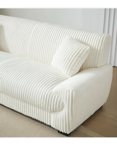 Canapé droit fixe 3 places velours côtelé beige - L198 x P81 x H79 cm