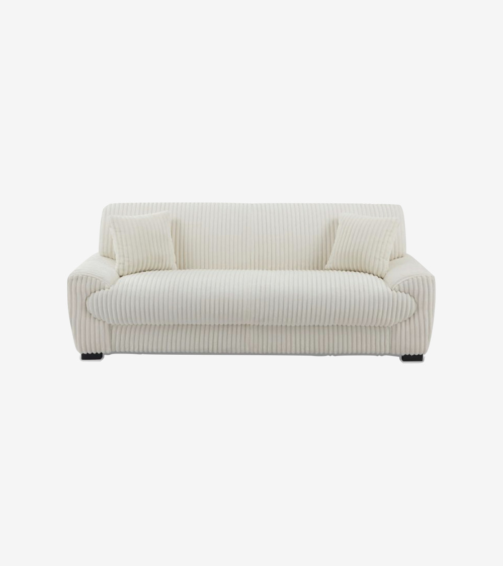 Habillé d’un velours côtelé doux au toucher, ce canapé allie style et confort. Les pieds noirs discrets soulignent son look contemporain, tandis que les deux coussins décoratifs inclus renforcent son aspect cosy et tendance. Il est facile à monter et s’adapte aisément à différents styles de décoration, du plus moderne au plus chaleureux.
