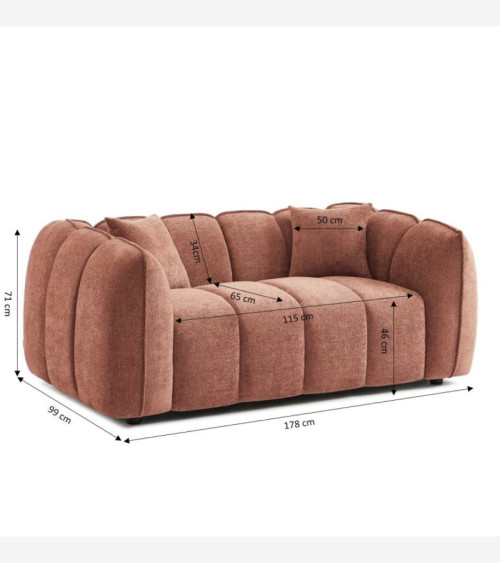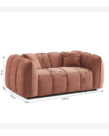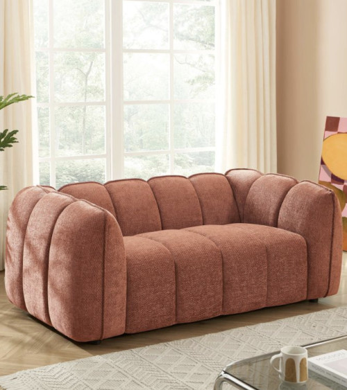 Canapé 2 places tissu chenille rouge brique L 178 x P 99 x H 71 cm
