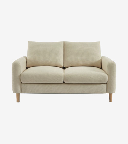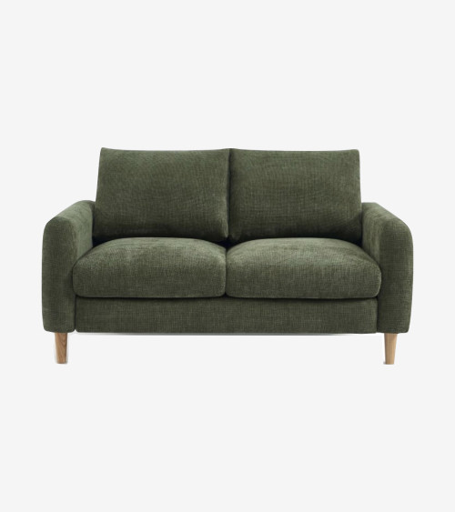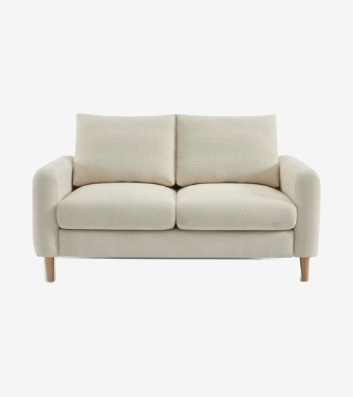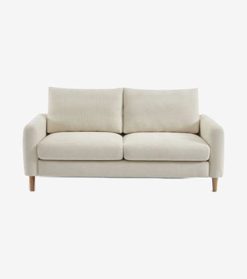 Ce canapé 2 places en tissu gris est à la fois élégant et confortable. Ses pieds en bois d'hévéa ajoutent une touche naturelle à sa structure solide.