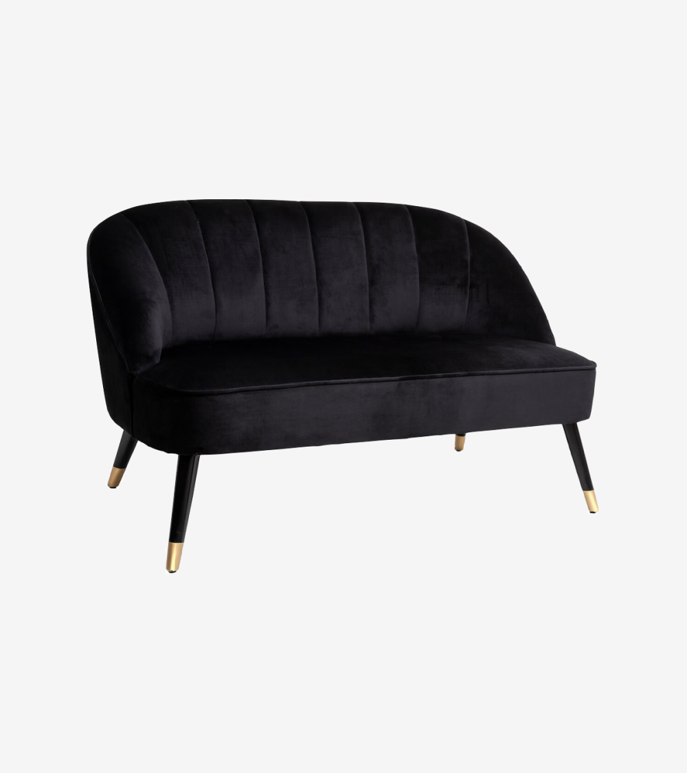 Canapé 2 places velours - Noir : L. 126 cm x l. 72 cm x H. 72 cm