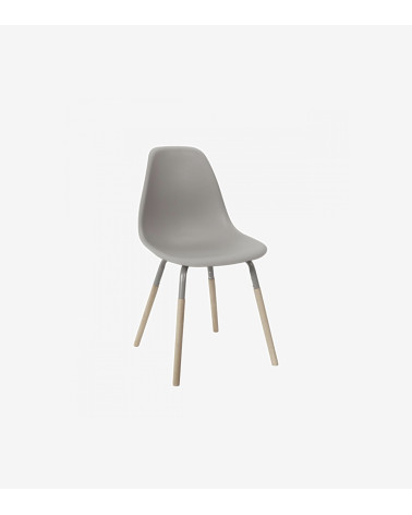Chaise scandinave Taupe. Cette chaise est très tendance et fait partie des produits les plus demandés. Sa coque en polypropylène est très pratique pour le nettoyage, ses pieds en métal et Bois de Hêtre sont robustes et durables.