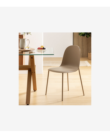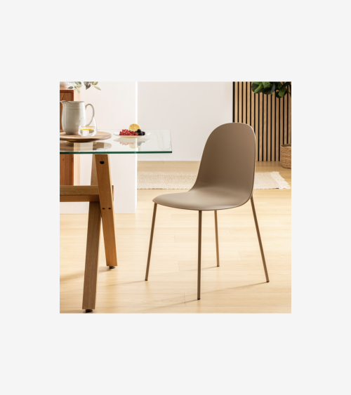 Avec son design épuré, la chaise "Asan" se mariera facilement avec du mobilier en bois d'inspiration scandinave. Montée sur un piètement en acier de couleur café, son assise ton sur ton est très confortable