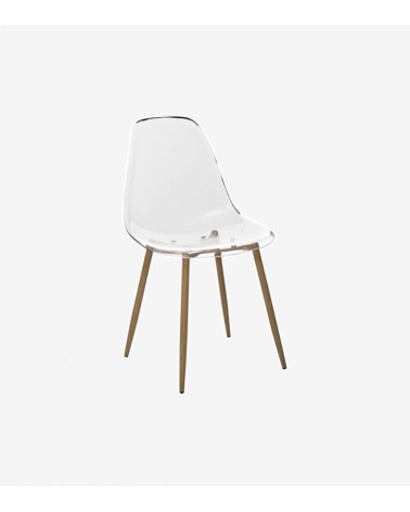 Chaise scandinave avec assise transparente. Cette chaise est très tendance et fait partie des produits les plus demandés. Sa coque en polypropylène est très pratique pour le nettoyage, ses pieds en métal imitation hêtre sont robustes et durables.