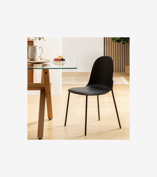 Avec son design épuré, la chaise "Asan" se mariera facilement avec du mobilier en bois d'inspiration scandinave. Montée sur un piètement en acier de couleur noir, son assise ton sur ton est très confortable