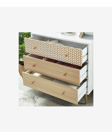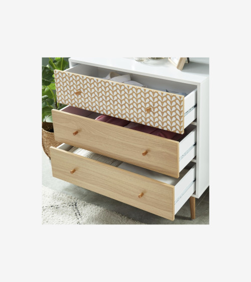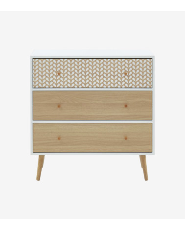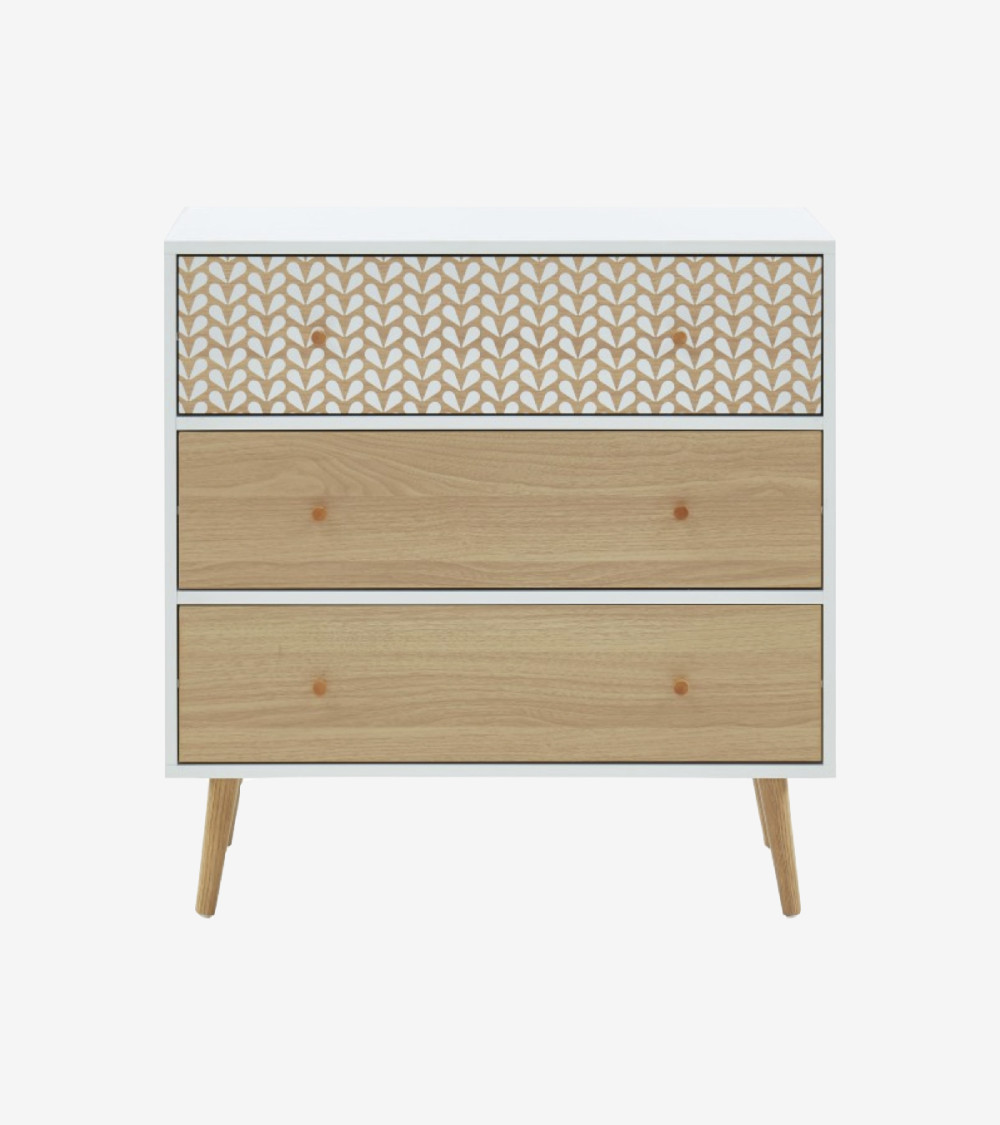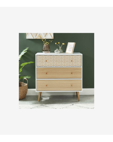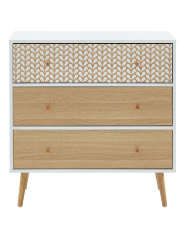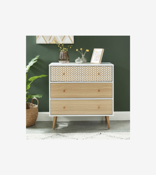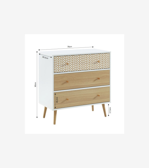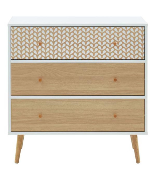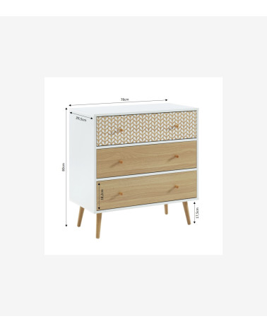 Commode 3 tiroirs blanc et effet chêne L78 x P39,5 x H80 cm
