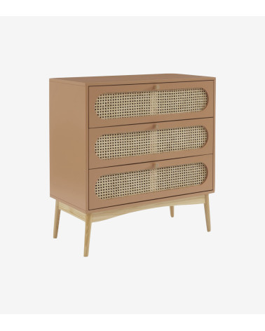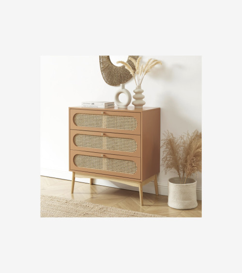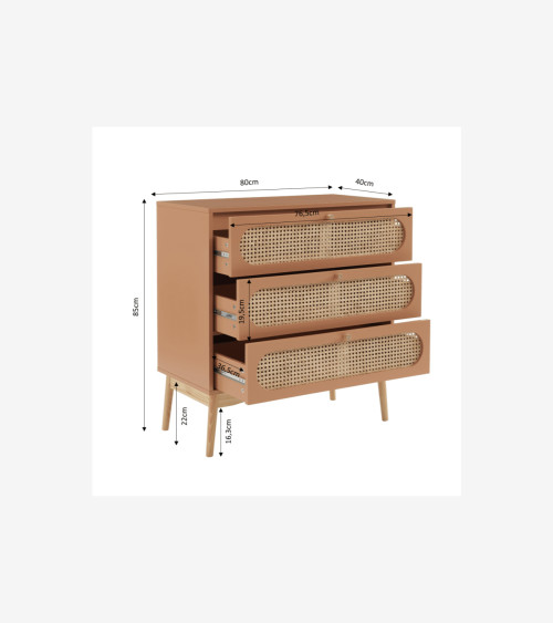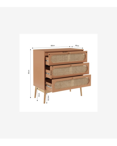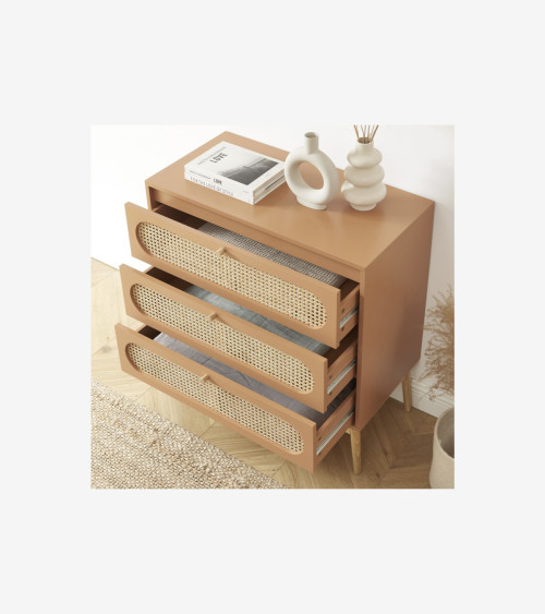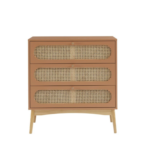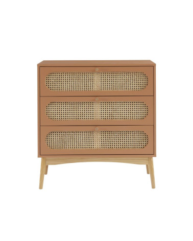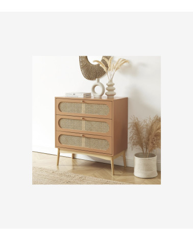 Commode 3 tiroirs cannage rotin et terracotta L80 x P40 x H85 cm