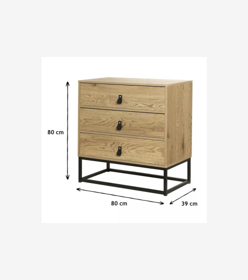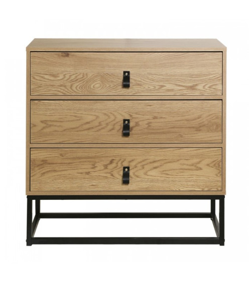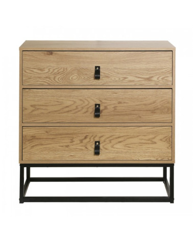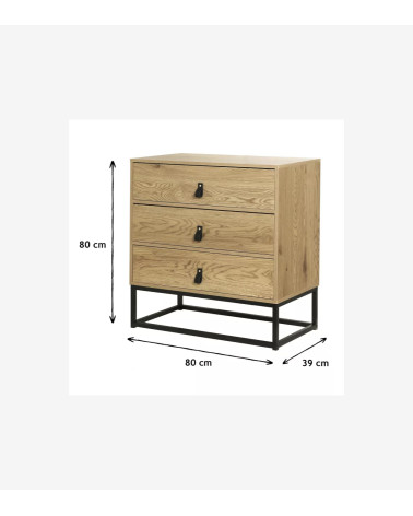 Commode Décor Chêne 3 Tiroirs Piétement Métal L 80 cm x P 39 cm x H 79.5 cm