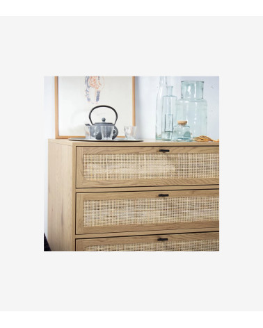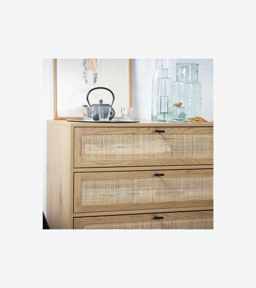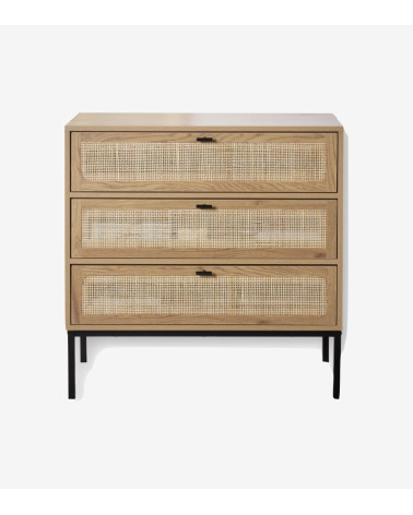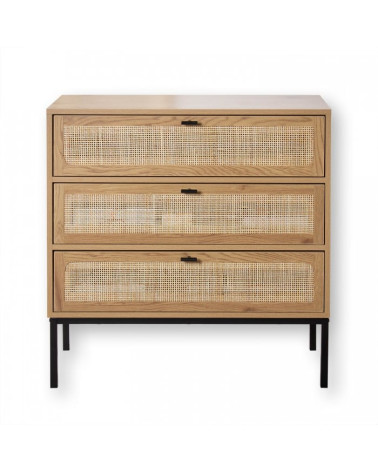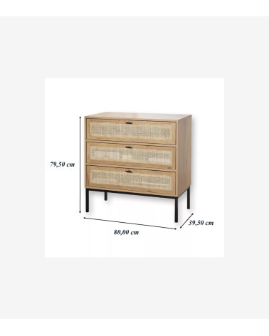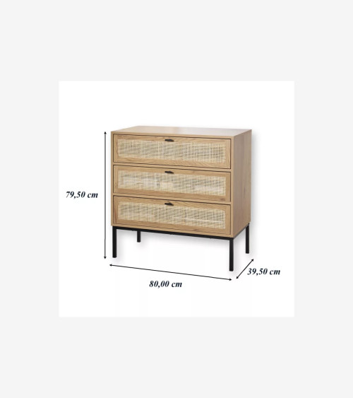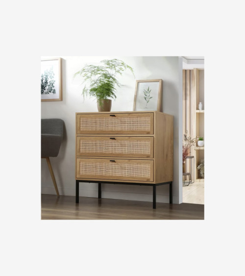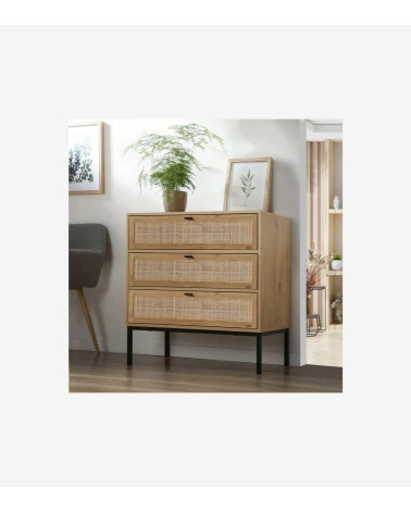 Commode 3 Tiroirs Façade Rotin - L 80 cm x P 39 cm x H 79 cm.