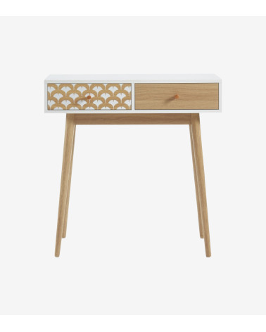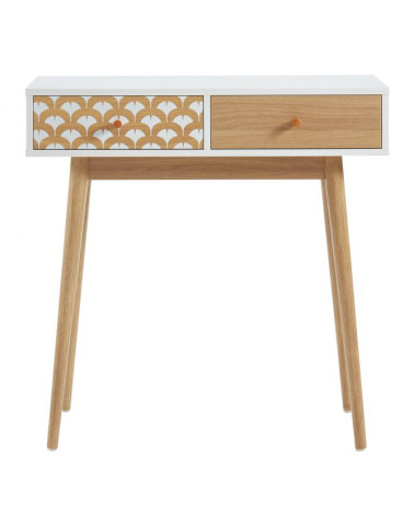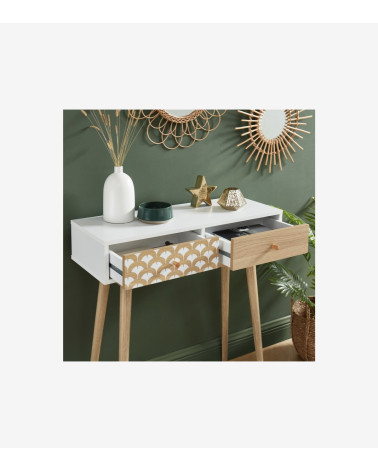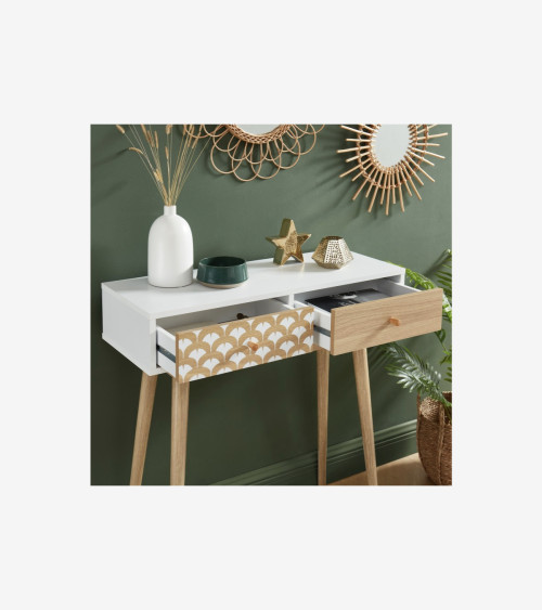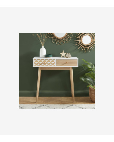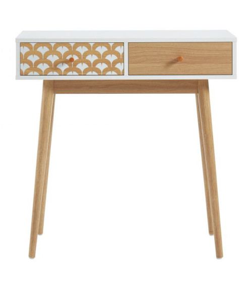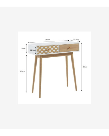 Console/bureau blanc et effet chêne 2 tiroirs L80 x P29.5 x H80