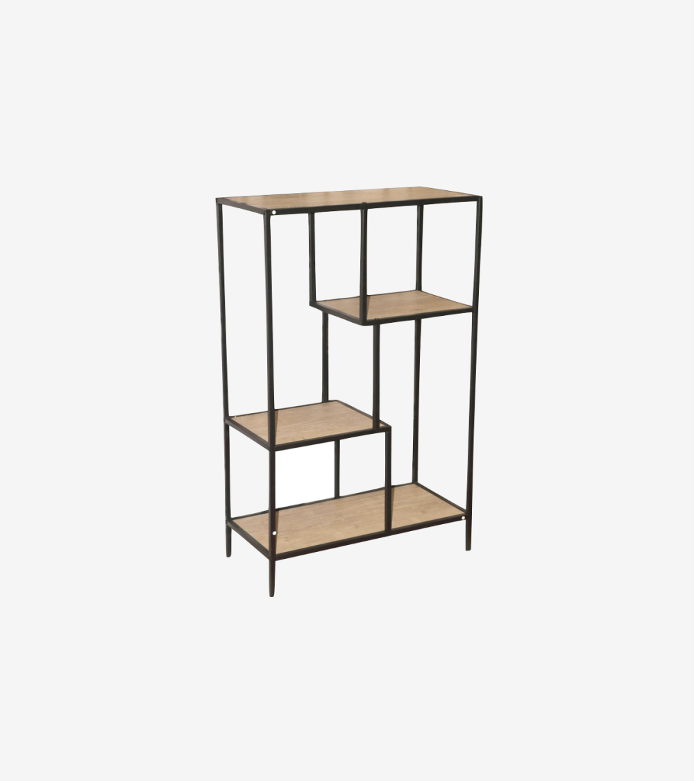 Elégante et raffinée, cette bibliothèque accueillera vos livres sur ses quatre étagères. Son design industriel et son mélange de bois et de métal apporteront du style à votre pièce.