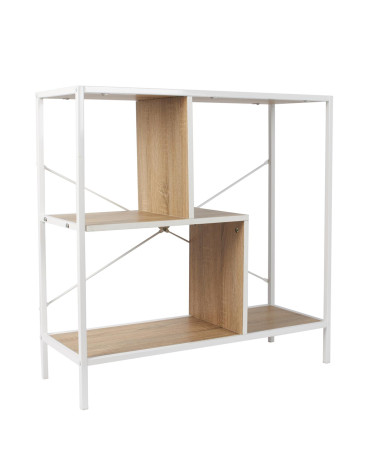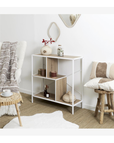 Etagère blanche métal et bois - L 80 x H 79,5 x P 30 cm
