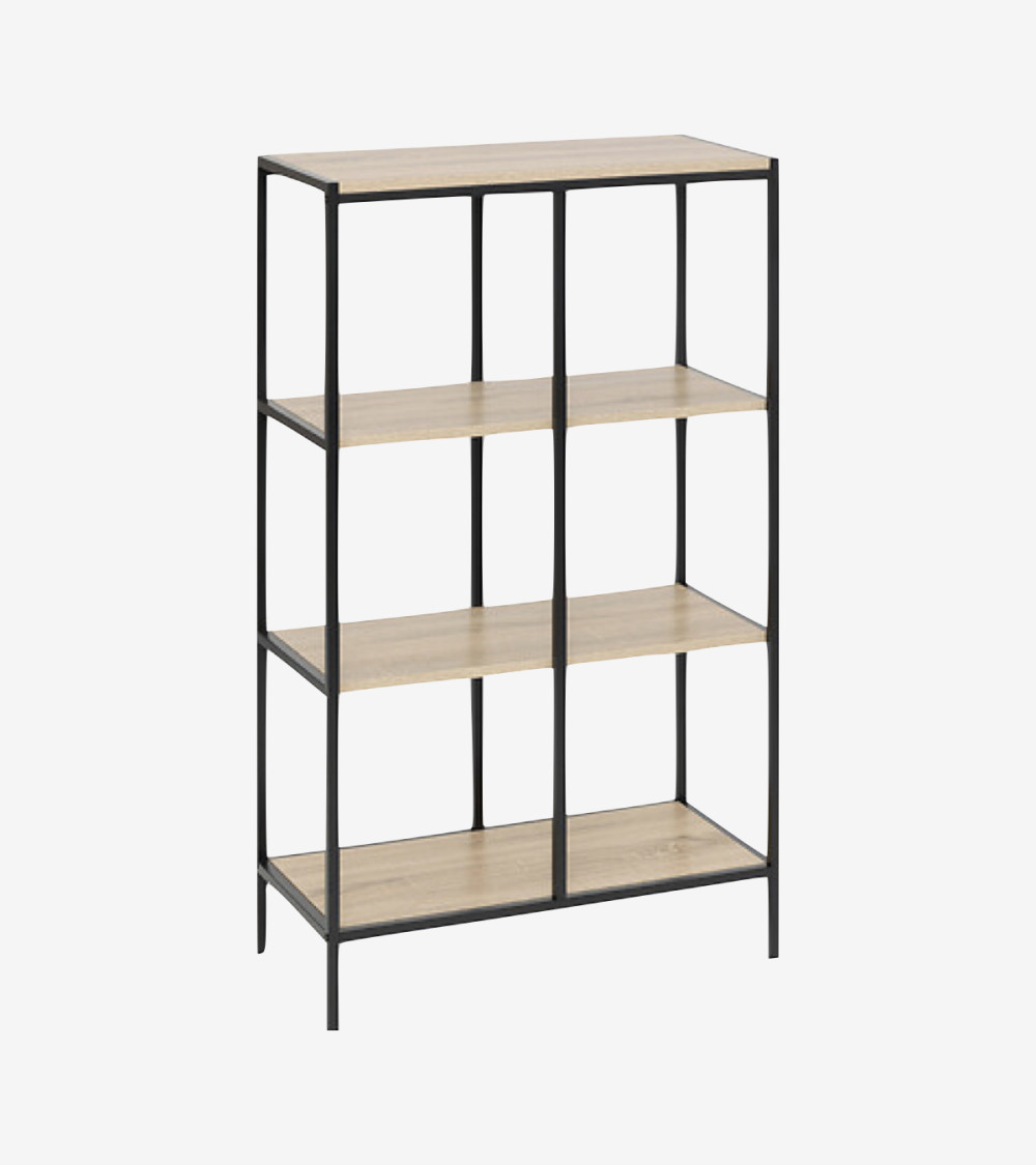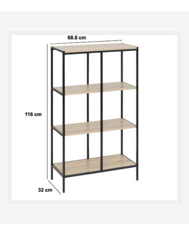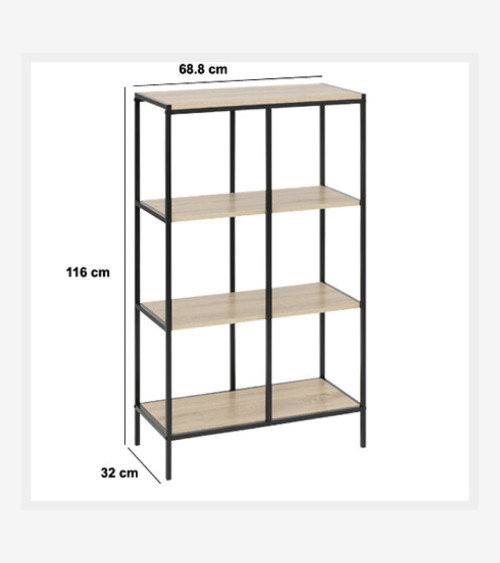 Profitez de 4 étagères spacieuses pour organiser vos livres, plantes et objets de décoration, avec une capacité totale de 40 kg pour un rangement fiable.L'association de la structure en métal noir et des plateaux effet bois apporte une touche de modernité et de caractère à votre salon, bureau ou chambre.