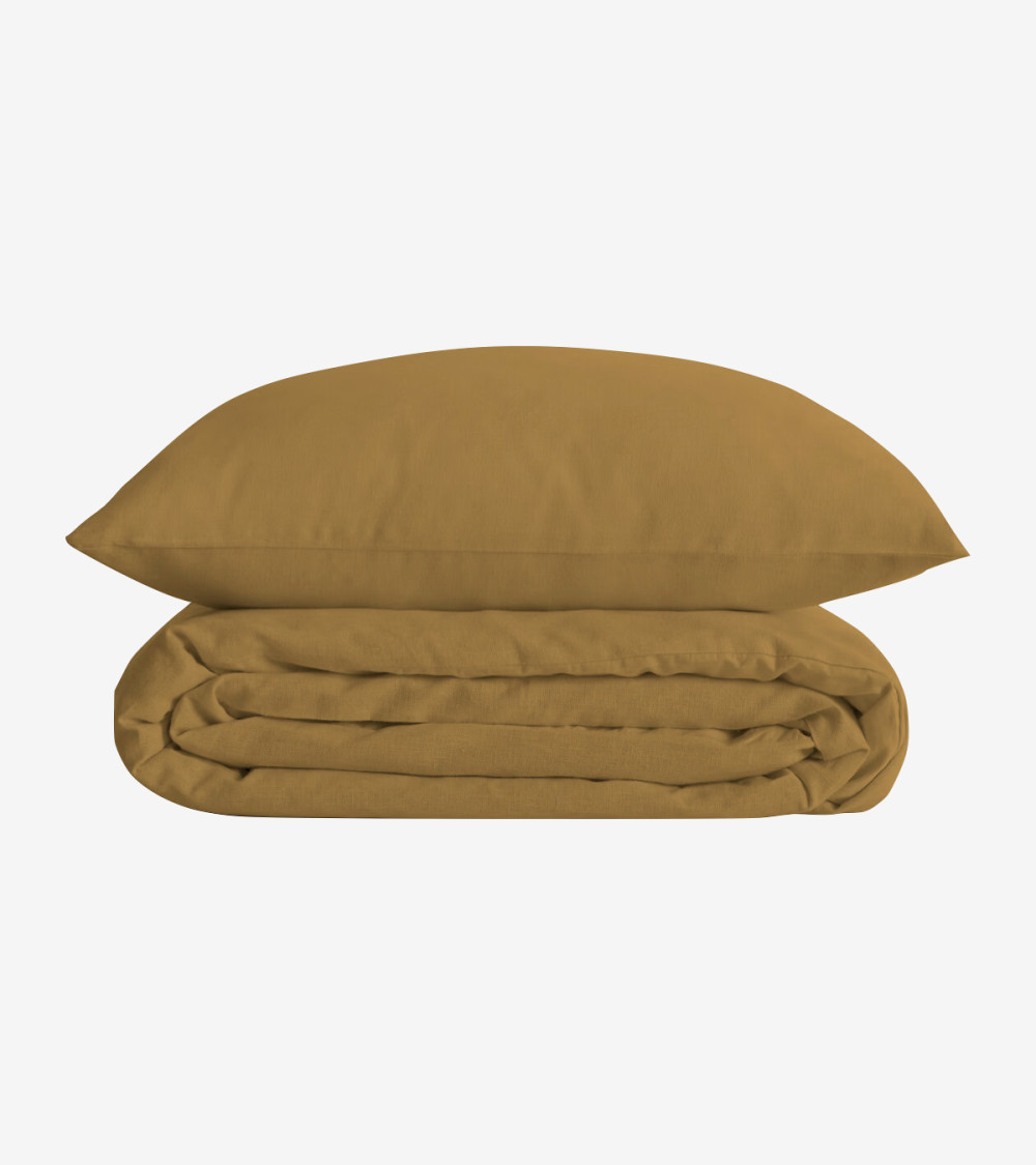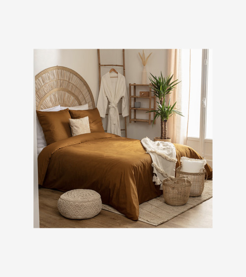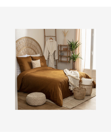 Unie, cette parure de lit conviendra à un grand couchage 2 personnes. Dotée d'une housse de couette et de 2 taies carrées, elle est proposée dans un coloris actuel et chaleureux. Réalisée en percale de coton, elle est lavable en machine et gagnera en douceur au fil des lavages.