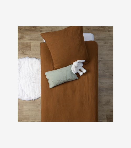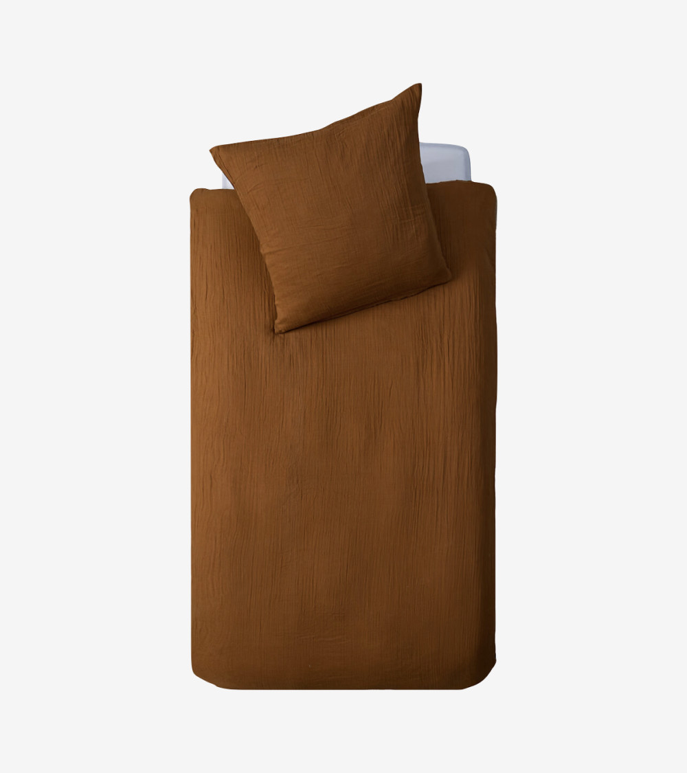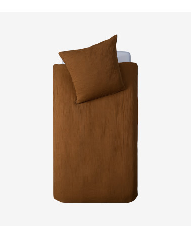 Parure de lit 140 x 200 cm gaze de coton noisette
