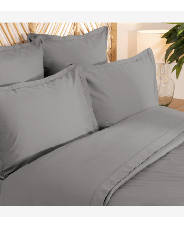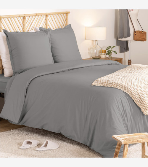 Parure de lit 240 x 220 cm percale de coton gris