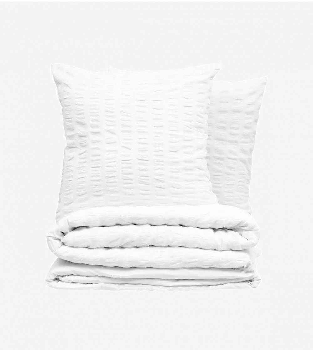Optez pour la parure de lit blanche, qui comprend une housse de couette en coton polyester et deux taies d'oreiller carrées. Son tissu léger est orné de rayures plissées élégantes. Avec un nombre de fils de 52 par centimètre carré, cet ensemble assure douceur et durabilité. Pratique, il se ferme avec 6 boutons et bénéficie de la certification OEKO-TEX® pour une tranquillité d'esprit quant à l'absence de substances nocives